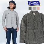 フェローズ Pherrows リネンストライプ ワークシャツ 長袖 麻 18s-730ws-st