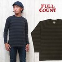 大きいサイズ ナチュラル カットソー フルカウント FULLCOUNT SLAB CREW-NECK TEE 杢 スラブ ボーダー ストライプ クルーネック Tシャツ 長袖 ラグランスリーブ