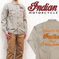 ワッペンにチェーン刺繍と豪華なワークシャツ! バイカーやネイティブ系が人気のインディアンモーターサイクルから、ワークシャツのご紹介です。 デザインは、フロント左胸部分にワッペンと背面には大きチェーン刺繍がく施されています。 素材はコットン100%を使用した肌触りの良いワークンシャツに仕上げて有ります。 薄手なのでインナーにも着用しやすいデザインに仕上がっています。 世代を問わず着用できるように抑えられたカラーリングの1着です。 全体的にシンプルなデザインになっていますが、その分チェーン刺繍とワッペンがインパクトのある1品となっています。
