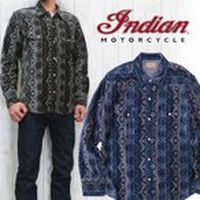 インディアンモーターサイクル Indian Motorcycle プリントコーデュロイ シャツ 長袖 ウエスタンシャツ ネイティブ柄 カジュアルシャツ