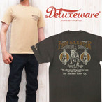 希少な吊り編み機とミシンを駆使した、コダワリTシャツ! 博物館級のヴィンテージミシンが実働稼働するデラックスウェアの直営工場「オルダクト」で生産した コダワリ抜いた究極のTシャツ。 1940年代のミシン「ユニオンスペシャル 2本針バインダー」を使用し 職人の手加減にて強弱テンションを付けて仕上げたバインダーネックは 柔軟性と長年の仕様にも耐えうる伸縮性に富み、品質強度と共に首回りの補強と「ゴロつき感」をも解消する。 ムラ形状の14番単糸を使用することでヴィンテージの風合いを実現しながら、 生産量が1日に極少数とする旧式吊織機により、ゆっくり密度を詰めながら編んだオリジナルの丸胴生地を製造。 また、デラックスウェア特有の立体形状オリジナルパターンにより 心地よいフィット感と着心地を体感できる。