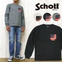 刺繍 カットソー ショット Schott ヘビーウェイト 長袖 Tシャツ 胸ポケット SCHOTT-FLAG Tシャツ