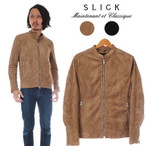 ジャケット スリック SLICK フェイク スエード シングル ライダース すっきり キレイ目 羽織物 ROLL COTTON RIDERS JACKET コットンライダース ロール