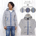 シンプル ブルー パーカー スリック SLICK ジップアップ ボーダー デニム パイピング バーンズBARNS七分袖スウェット小寸吊り編みCOZUN裏地起毛 br