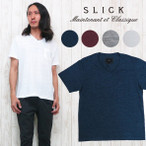 天竺 スリック SLICK Tシャツ 半袖 V-NECK Vネック 杢ボディ アブストラクト さらさら メール便OK WHITES VILLE ホワイツビル クルーネック 針抜きリブ 無地 Tシャツ
