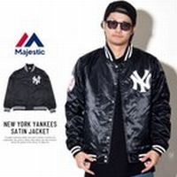 マジェスティック サテンスタジャン スタジアムジャンパー メンズ 中綿 ニューヨーク ヤンキース マルチロゴワッペン MAJESTIC MLB 野球