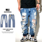 ブルー パンツ REASON CLOTHING リーズン ジーンズ デニム メンズ ダメージ加工 VESEY DESTORYED DENIM DC SHOES ディーシーシューズ ストレートジーンズ WORKER STRAIGHT STON