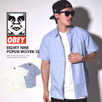 ブルー OBEY オベイ コットンポプリンシャツ ボタンダウンシャツ メンズ 半袖 カジュアルシャツ EIGHTY NINE POPLIN WOVEN SS クラウドサーティーン ミリタリーシャツ フレンチカフ B系 ストリート系ファッション 大きいサイズ