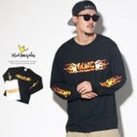 綿100% アメカジ カットソー マークゴンザレス ロンT 長袖Tシャツ メンズ フレイムGONZロゴ プリント Mark Gonzales