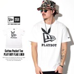 刺繍 ニューエラ NEW ERA Tシャツ メンズ 半袖 プレイボーイ コラボ PLAY BOY フラッグロゴ ホワイト×ブラック 秋冬 プリント 黒 ブラック×ゴールド