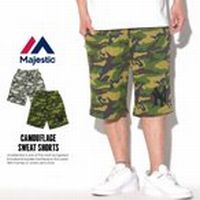 プリント ミリタリー パンツ マジェスティック MAJESTIC スウェット ハーフ メンズ ニューヨーク ヤンキース ロゴ 迷彩柄 カモフラ MLB 野球 CAMOUFLAGE SWEAT SHORTS ボトムス ショート