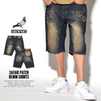綿100% 刺繍 パンツ STAPLE ステイプル ハーフ メンズ クラッシュデニム ショート SAFARI PATCH DENIM SHORTS 秋冬 ツイル バギー 白 黒 大きいサイズ B系 ヒップホップ ストリート系 ファッション