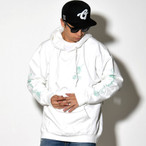 SK8シーンのみならずストリート全域で爆発的人気を誇る、黒人プロスケーター"Stevie Williams(スティービー・ウィリアムス)"がボスを務めるスケートボード・アパレルブランド『DGK(ディージーケー)』のパーカー。 西海岸のタトゥーグラフィックをモチーフにしたド派手なグラフィックをフレッシュなミントグリーンのカラーでスッキリと落とし込んだ、グラフィックセンス抜群な一着。 暖かくソフトな裏起毛に仕立てたスウェットを使った、軽めのライトオンスながらも秋冬らしい仕上がりの一着。 《ブランド》DGK (ディージーケー) 《品名》OUR WORLD HOODED FLEECE 《型番》DPO-332 《素材》綿80% ポリエステル20% 《モデル情報》身長173cm 体重64kg 着用サイズ:L 《サイズ》着丈│身幅│肩幅│袖丈(cm) 《M》72│55│54│63 《L》75│58│56│64 《XL》77│63│63│64 《2XL》79│66│66│66 …