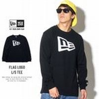 綿100% カットソー ニューエラ ロンT 長袖Tシャツ メンズ NEW ERA フラッグロゴ 2 ブラック×ホワイト