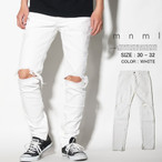 mnml ミニマル スリムテーパード デニム ジーンズ メンズ ダメージ クラッシュ ストレッチ 裾ジップ M47 STRETCH DENIM ブルー 17ML-AW259D
