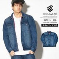 刺繍 綿100% ジャケット ロカウェア ROCAWEAR デニム メンズ Gジャン フランネル裏地 B系 ヒップホップ ファッション