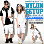 軽量 ノースリーブ ダンスウェア 上下セット ナイロンセットアップ ジャージ パーカー ハーフパンツ HIPHOP 衣装 メンズ レディース 大きいサイズ 秋冬 無地 B系 メッシュジャージセットアップ