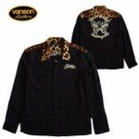 VANSON バンソン メンズ 長袖レーヨン オープンシャツ 豹柄