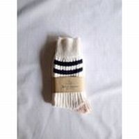 Merz b. Schwanen(メルツベーシュヴァーネン)のクルーソックス「STRIPED BAMBOO SOCKS」。素材はオーガニックコットン52%・バンブー48%。防臭性・吸湿性に優れたエコフレンドリーな繊維である竹繊維をコットン繊維に混ぜて織られており機能性・着心地に優れます。同社のカットソー同様にしっかりとした肉感のある、丁寧に作られたソックス。WHITE(オフホワイトに近い)にINK BLUEのラインが入ったオールドスクールなデザインもお見事。サイズ39-42のワンサイズ展開。約25cm?27.5cmぐらいのヌードサイズに対応します。MADE IN GERMANY。