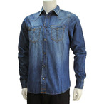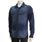 ディーゼル DIESEL D-BROOME 濃いめウォッシュブルー ジ 綺麗めヴィンテージデニム風シャンブレー長袖カジュアルシャツ
