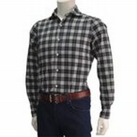 フィナモレ イタリアブランド メンズシャツ カッタウェイ ブラック&ホワイト マドラスチェック フランネル
