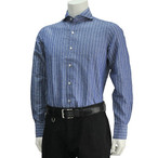 ボンサー ネイビー&ホワイト ブロードコットン メンズドレスシャツ イタリアメーカー ワイドスプレッド ビッグサイズ