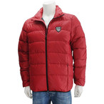 エンポリオ アルマーニ EA7 エアセッテ EMPORIO ARMANI レッド 縦線が表地に走り ズバッ と赤色が爽快 黒パイピングとスタンドネック型の超軽量ダウン