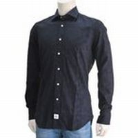 スカル ハイドロゲン 紺ネイビーブルー色コットンオックス地 長袖カッタウェイ襟カモフラージュ織り柄シャツ メンズ カジュアルシャツ