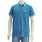 ヒューゴボス HUGO BOSS ブルー Prime 凹凸線入りリブ襟 胸パッチワークワッペン鹿の子ポロシャツ 18春夏