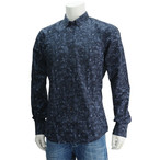 ヒューゴボス オレンジレーベル HUGO BOSS ORANGE Edipo-Eモデル ネイビー ボタンダウン 海月モチーフの濃紺コットン長袖シャツ