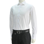 ボンサー カジュアルシャツ 白ホワイト メンズ長袖 BONSER ストレッチコットン ホリゾンタル衿 メンズ