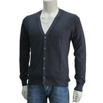 クルチアーニ Cruciani ネイビーブルー系 FAST 艶と色斑のあるメランジフェイス ウール&シルク 30ハイゲージ薄手ニットクロスVネックセーター 長袖 メンズ