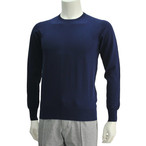 クルチアーニ Cruciani ネイビーブルー サマーコットン100% 丸首スリムフィット 綿セーター ニットソー クルーネック長袖 メンズ17SS