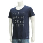 スコッチ&ソーダ SCOTCH&SODA Tシャツ 半袖 ネイビー リネン&コットンのさらっと天竺編地 ユーズド風