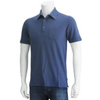ロベルトコリーナ roberto collina BLUE ブルー 襟付ポロシャツ風、胸ポケット付き細ボーダーリネン地半袖ポロシャツ、メンズ