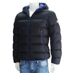 ヒューゴボス HUGO BOSS COXTAN ネイビー ナイロンの前ガード付き スタンドネック カシミア混紡ウールメルトン中綿ハーフ丈コート メンズアウター