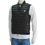 モンクレール Moncler ブラック リブ襟デザイン スーパースリムフィット バックパネルはコットン鹿の子 スタンドネック ダウンベスト メンズブランド