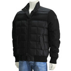 モンクレール ブラック ウールフランネル地コンビ メンズダウンジャケット スタンドネック アラミス