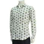 ハイドロゲン HYDROGEN クリームホワイト&グリーン WHITE PALMS SHIRT ワッフル織り 常夏の木々をプリントしたカジュアルシャツ コットン長袖シャツ