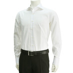 ボンサー カジュアルシャツ 白ホワイト メンズ長袖 BONSER ストレッチコットン ホリゾンタル衿 メンズ