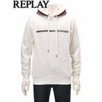 リプレイ REPLAY メンズ 裏起毛 プルオーバーパーカー ロゴ織り&ストライプテープ スウェット オフホワイト色 国内正規品