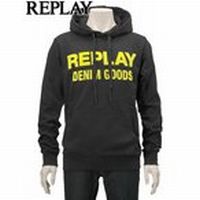 リプレイ REPLAY メンズスウェット 裏起毛プルオーバー パーカー イエローフロッキーロゴ ダブルリング 国内正規品