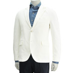 チルコロ メタルボタン 2Bアンコンジャケット ホワイト 鹿の子コットンストレッチ ネイビー系 メンズブランド