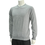 クルチアーニ Cruciani ネイビーブルー サマーコットン100% 丸首スリムフィット 綿セーター ニットソー クルーネック長袖 メンズ17SS