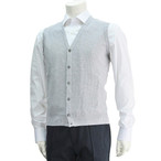 ラルディーニ LARDINI ライトグレー系 コットンニット ハニカムな織り柄が浮かぶ6つ釦シングルベスト ブートニエール付