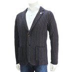 ラルディーニ LARDINI IB47019 ネイビー&ブラウン クレージーパターン ウールニットクロス2つ釦アンコンジャケット ブートニエール付き