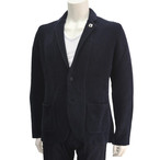 ラルディーニ LARDINI ネイビーニット クロス ふかふか暖かい2つ釦シングルソフトジャケット カーディガン