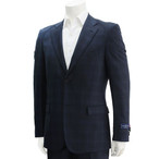 cloth by エルメネジルド ゼニア TORFEO 秋冬 ブルーが艶めく、ウインドーペーンとトリプルストライプMIX スリムフィット2つ釦スーツ メンズn