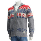 ウィリアムロッキー WILLIAM LOCKIE CHACOAL チャコールグレー 立ち襟とフェアアイル柄。羽織りからプルオーバー風にも着用できるニットカーディガン