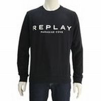 夏 春 リプレイ REPLAY 国内正規品 メンズ クルーネック スウェットシャツ ブラック ブランドロゴ 裏毛 ダメージリブ 長袖 メンズファッション ジャージ